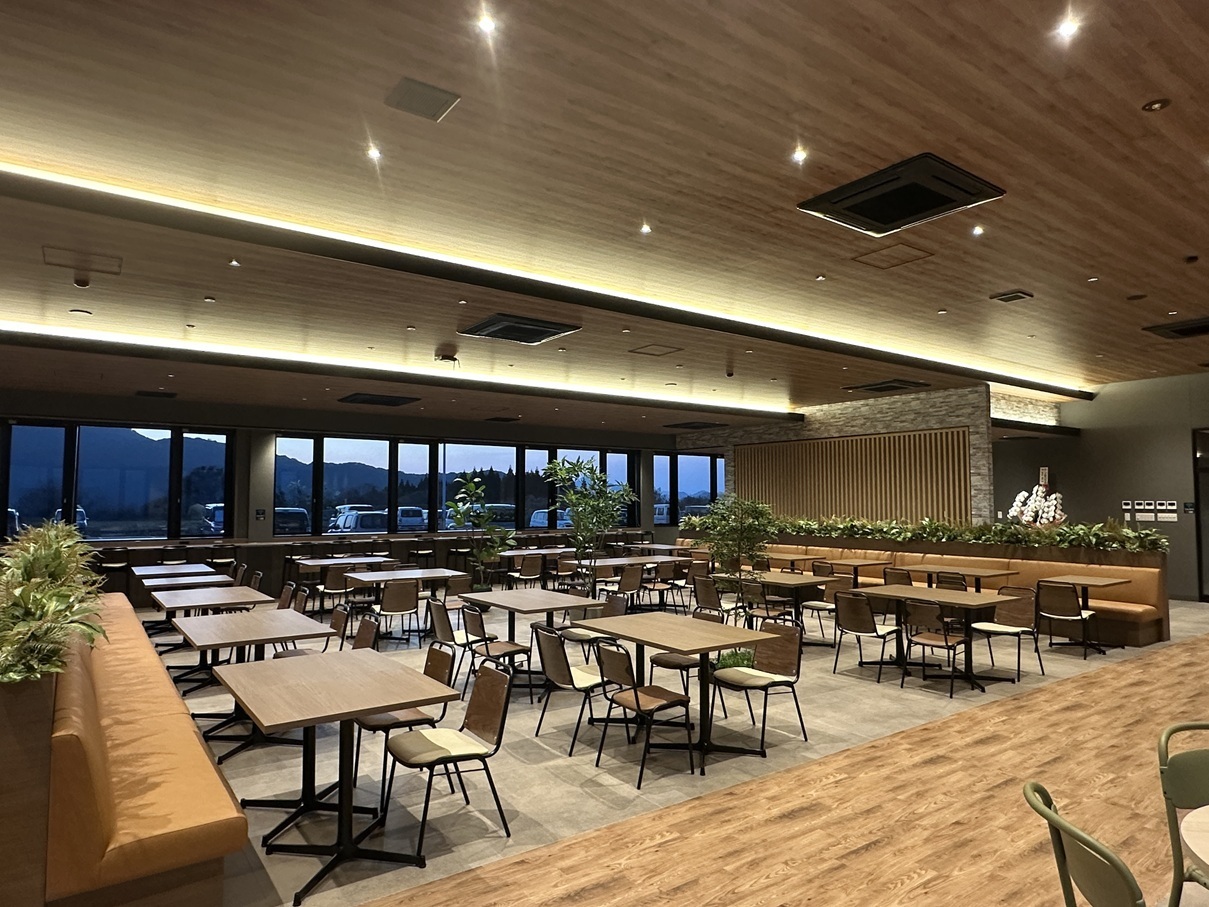本施設は、昨年8月より建設を開始し、このたび無事に完成いたしました。内装は緑を基調とし、リラックスできる落ち着いた雰囲気の空間となっております。